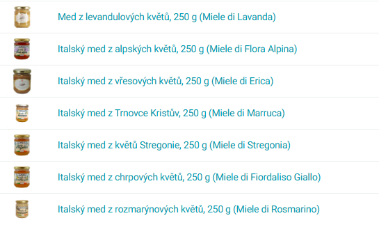 Výprodej, Slevy a Novinky Sady Sada Medů 2 Výprodej, Slevy a Novinky Sady Sada Medů 2 Sada Medů 2 PředchozíDalší Další fotky (8) PředchozíDalší Přidat do oblíbených Přidat do porovnání Pro více informací (Skladování, Alergeny, Výživové údaje, Expirace atd) rozklikněte PARAMETRY Akce -17 % Běžná cena 1 439 Kč. Ušetříte 17 %(249 Kč). 1 190 Kč Skladem více než 10 ks - Můžeme doručit do 2 pracovních dnů ks Do košíku Kód produktu: P00608 Doprava a platba Sada Medů 2 Více Produkty v sadě (7) Produkty v sadě - ušetřete 200 Kč7 Med z levandulových květů, 250 g (Miele di Lavanda) Italský med z alpských květů, 250 g (Miele di Flora Alpina) Italský med z vřesových květů, 250 g (Miele di Erica) Italský med z Trnovce Kristův, 250 g (Miele di Marruca) Italský med z květů Stregonie, 250 g (Miele di Stregonia) Italský med z chrpových květů, 250 g (Miele di Fiordaliso Giallo) Italský med z rozmarýnových květů, 250 g (Miele di Rosmarino) PředchozíDalší Popis Diskuse0 Sada obsahuje: Diskuse Odeslat Sdílet Tweet Pin It